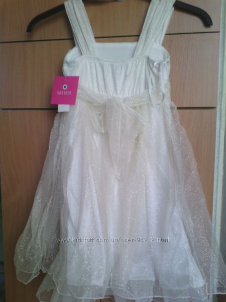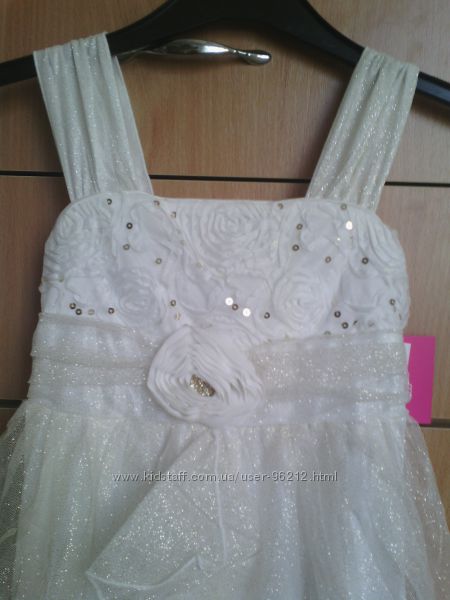 Нарядное платье США Amy Byer цвет молочный с блестками размер 8,12 лет размер 8, шир по груди-31см,сзади по спинке идет резинка, шир по талии-30см,завязывается на бант и есть резинка в талии, длина-75см.