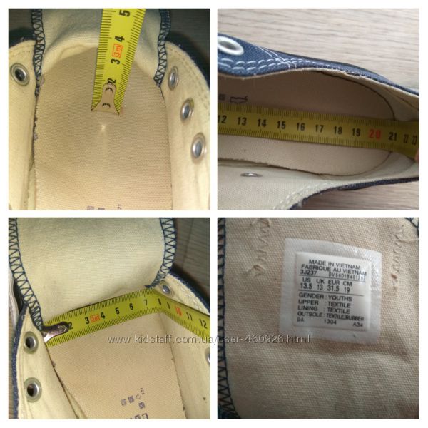 Стильные,модные кеды для девочки или мальчика. Цвет красивый, не выстираный, темно синий. Стелька от пласкостопия, мягенькая. Оригинал 100%. Пр-во Вьетнам. Есть на стельке номер патент. Кеды удобные и легкие. Для молодёжи активной отличный вариант. Размер 13,5, наш 32, 5, на ногу рекомендовано 19 см,будет запас,так как стелька 21см. Замеры на фото. Состояние супер, идеальное. Ношены совсем мало. Почти как новые и остались. Чистенькие, можно сразу носить.Подошва не потерта, очень хорошая.Спереди не сбиты, не потерты.Вобщем без дефектов и нюансов. Смотрятся супер красиво и модно. Смотрите сами на фото. Отправлю укрпочтой 15 грн,новой почтой. Без обмена и торга!!! Оплата на карту приват. Наложеный платёж возможен только новой почтой и по предоплате. Если сомневаетесь в размере, то это хороший вариант. Возврат не предусмотрен.