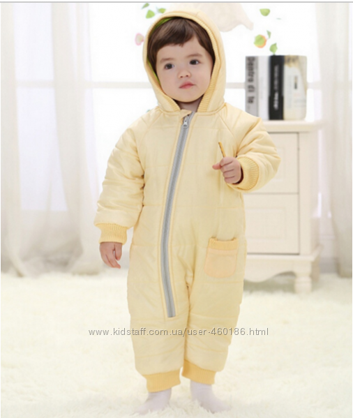 Снаружи комбинезона водоотталкивающая ткань, внутри синтепоновая подкладка . Трикотажные резинки на штанинах, рукавах и капюшоне комбинезона защитят от ветка и попадания влаги. Легко и удобно снимается и одевается на малыша.