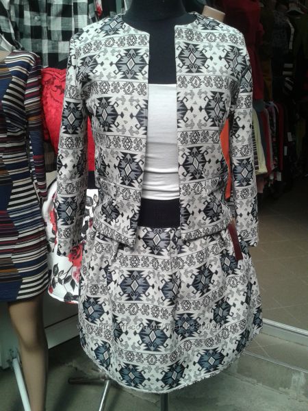 Стильный космтюм с юбкой Итальянского производства. 3 размер, 4 расцветки.Юбка в цветочек без пиджака. Цена 450 грн. 3 размера