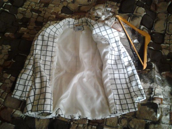 Очень крутой по качеству пиджак из ткани по типу шерсть, парижского дома моды Bestini, который выпускает ограниченное количество вещей. Теплый, можно носить как верхнюю одежду, как полупальто. Состав 100 % вискоза, оригинал, сделано во Франции, цвет молочно-белый в черную клетку.