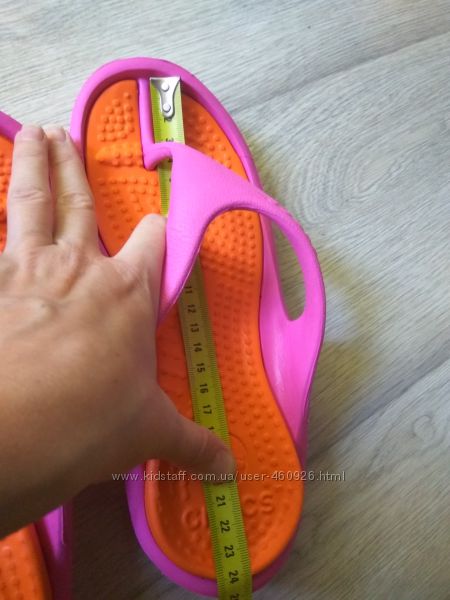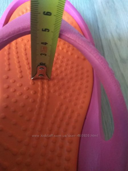 Очень яркие, красочные вьетнамки шлепанцы Crocs. Оригинал. Только примерялись, по двору прошлись, помыты и стоят, купила на подарок сестре, но с размером немного прогадала. Идут на наш получается 37.Указан размер 4-6,стелька по оранжевом для ноги 24см. На ногу 23,5-24см. Очень классные, супер удобные. Лёгкие. На лето супер. Легко мыть и быстро сохнут. На каждый день, на море, бассейн. Ноги не потеют и нет запаха.
