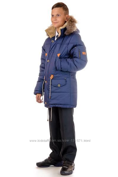 Подробное описание: Зимняя куртка парка для мальчика с натуральным мехом енота