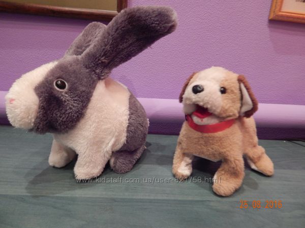 Фото 9 - музыкальные игрушки. Собака лает, приседает и переворачивается. У зайки шевелятся ушки, Долматинец лает , крутит головой и машет хвостико