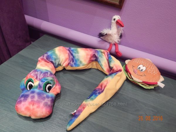Наши мягкие игрушки. Спрашивайте - отвечу на все вопросы.Фото 7 - змея с застежкой молнией, можно положить внуть конфетки.Фото 8 - змея с сумочкой новая с этикеткой, фирма Украина "ЛЕВЕНЯ".