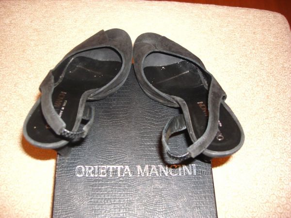 Черные замшевые босоножки. Италия. Размер 36.Каблук 9 см, танкетка 1.5 см, стелька 22 см.