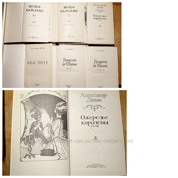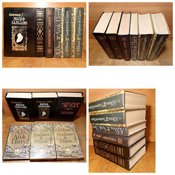 3. Дюма. Цикл Записки врача. Жозеф Бальзамо. Ожерелье королевы. Анж Питу. Графиня де Шарни. 6 книг. Состояние очень хорошее - 450 грн 1. Жозеф Бальзамо. В 2 томах. Издательство: Полиграфкнига. 1992 год. Очень хорошее состояние. 2. Ожерелье королевы. Издательство: Краснодар. 1991 год. Отличное состояние 3. Анж Питу. Издательство: Хмельницкий. Поділля. 1993 год. Очень хорошее состояние. 4. Графиня де Шарни. В 2 томах. Издательство: Хмельницкий. Поділля. 1992-93 годы. Очень хорошее состояние.
