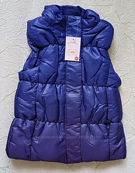 Красивые теплые жилетки синего цвета на весну и осень для девочек и мальчиков, застежка на молнии и кнопкахразмер 2 рост 80-95 см, плечи 25 см, бюст 60 см, длина 38 см