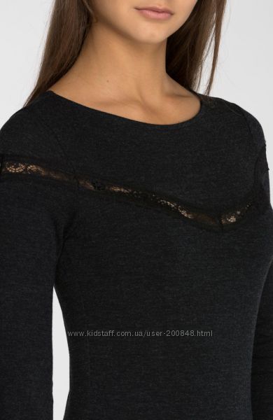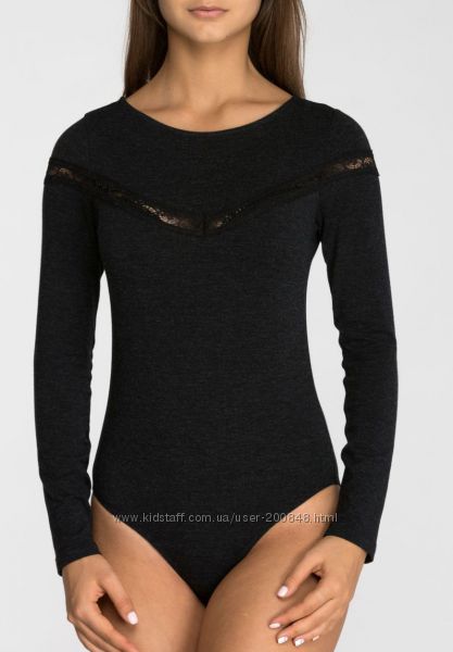 Бодик с кружевом с круглым вырезом код товара БДЖ-363/1 фото 1-3 Длинный рукав. Вертикальная вставка кружева чуть выше груди.