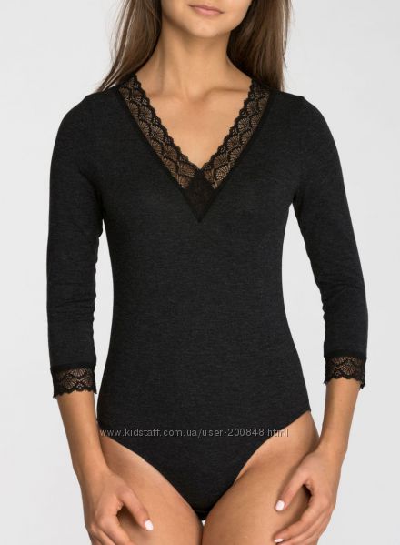 Бодик с кружевом с V-образным вырезом код товара БДЖ-362/1 фото 4 Рукав 3/4. Вставка кружева по канту горловины и на рукавах.