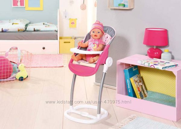 Встречайте новинку от Zapf Creation - немецкого производителя потрясающих кукол Бэби Борн! 105.84м Высокий cтульчик позволит куколке удобно сидеть и не падать во время игры. Его обновленный дизайн порадует вас своим стилем и отлично дополнит остальной набор. Пупсика помещаем на стул, закрепляем его ремнями безопасности и можно смело кормить его!
