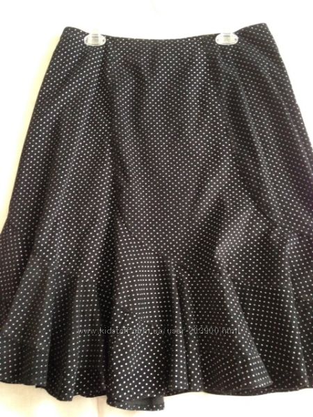 Юбка густого черного цвета в крапинку, ткань типа мелький вельвет-бархат, 100-% хлопок. Размер L (14), 48-52. Без пояса. Застежка молния сзади. Не мнется. Длина 66 см, в талии 86см, в бедрах 112см. Б/у в отличном состоянии. Из США. Цвет как фото фрагмента. Не получились фото натурального цвета. Доставка Новой и Укрпочтой. Оплата на карту.