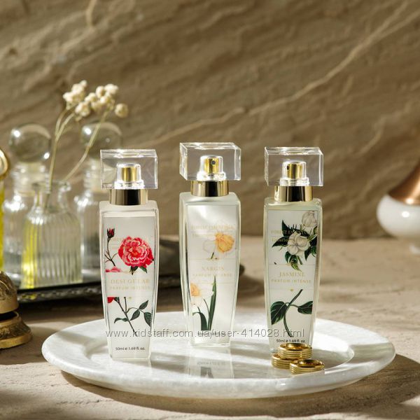 8. Елітні квіткові парфуми Кашмірський Нарцис, Красуня Троянда, Мадурайський Жасмин
