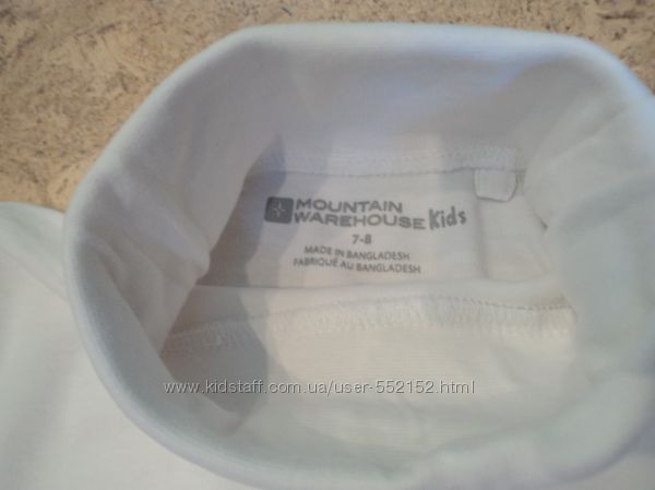 ВОДОЛАЗКА БЕЛАЯ, рукав на манжете, горловина с отворотом, не тугая, но хорошо прилегает, состав: хлопок 100%Фирма "Mountain Warehouse"пр-во Бангладеш. Размер: 7-8,9-10,11-12,13.Замеры на 9-10 лет