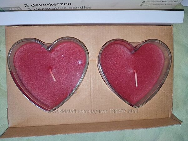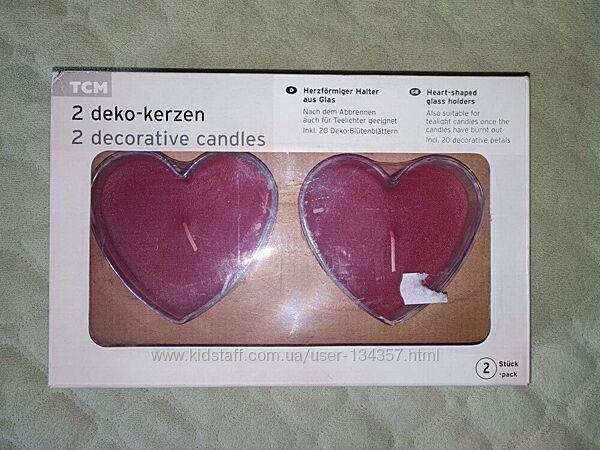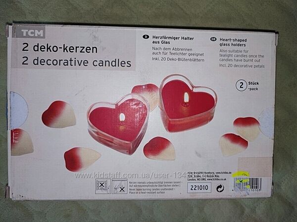 Подробное описание: Набір з 2 великих свічок у скляних формах серця TCM Німеччина. Свічки серце