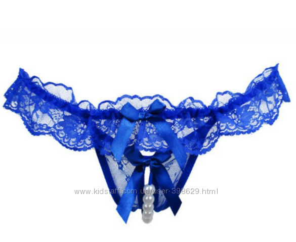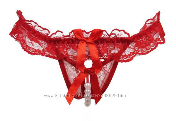 Ажурные стринги с бусинками украшенные гипюром и атласными бантиками