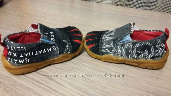 Фото1-6: Мокасины для мальчика, размер 21, стелька 13,5см., носочек - замш и кожа, основная часть - джинс с селиконовыми надписями ( поэтому при стирке не повреждаются ).Фото8-10: Сланцы для мальчика, размер 6 (22), стелька 14,5см. Покупали для моря, носили одну неделю, очень удобные, не натирають между пальчиками. Отдам в подарок к мокасинам.