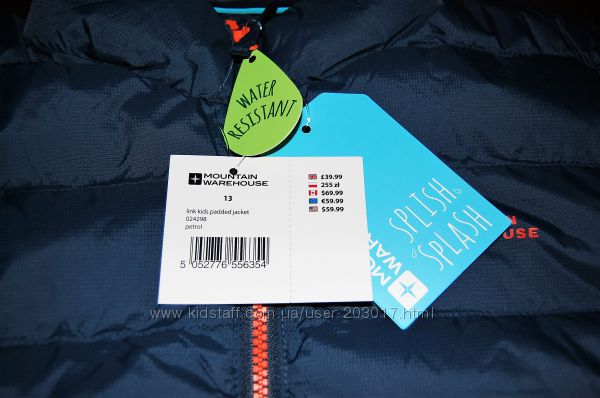 Куртка брендовая демисезонная водонепроницаемая Mountain WarehouseКуртка Link Kids Padded Jacket