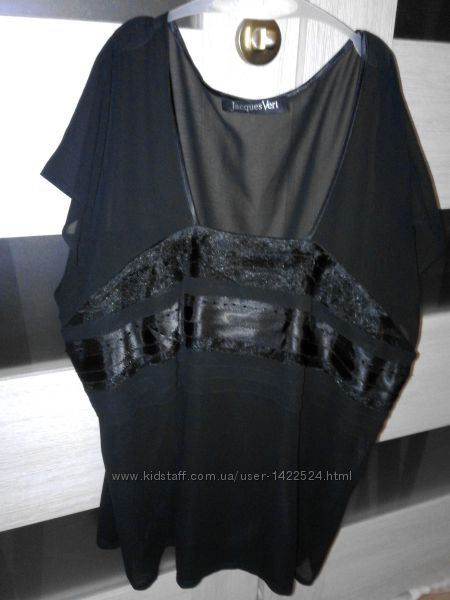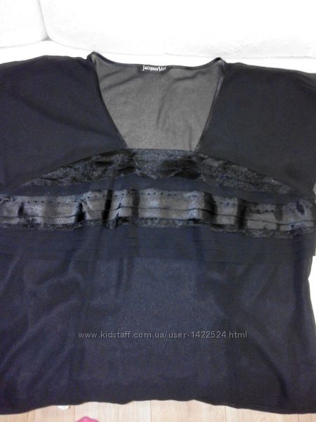 Продам очень изысканную стильную и нарядную блузу фирмы Jacques Vert. Длина -63 см, ширина - 52 см., плечи - 66 см. Подходит на размер 50-54.Цвет: Чёрный