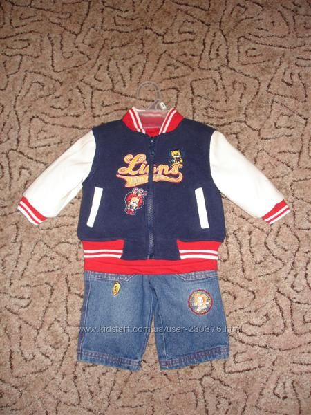 Костюмчик на холодную осень/зиму (до сильных холодов)- курточка (рукава кожзам)+батник+джинсы. Размер 67см. (реально до года) Новый, муж привез с Англии в начале года-был большой, а теперь маленький. В наличии 2 к-кта, т.к. привезены д/двойняшек. Цена 2000грн. за 1 к-ктОстался 1 к-кт. (один продан)