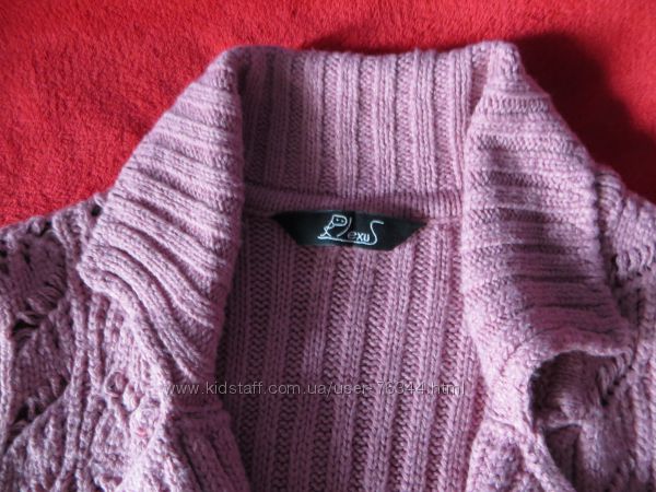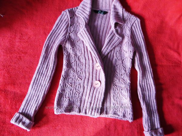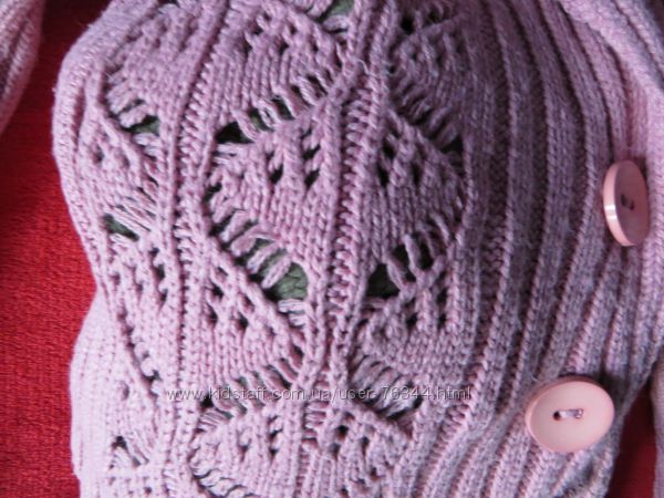 Отличное состояние. Как новая. Высота спинки 56, рукав от плеча не подвернутый 68. Плечо 11 см. Ширина под мышками 42. Спереди ТРИ большие пуговицы и ажурные вставки по бокам. 50 шерсть, 50 акрил.Одна пуговица под полой - я забыла ее застегнкть для фото.Другие объявления продавца