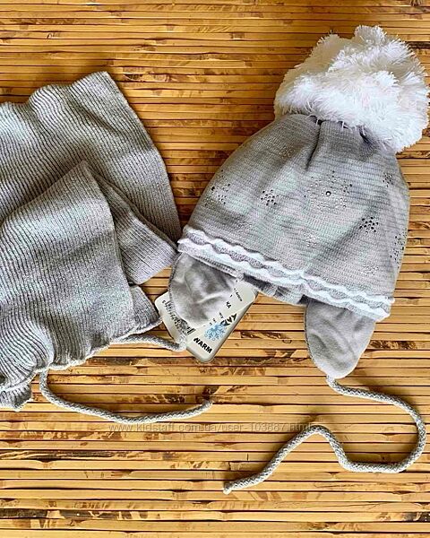 Зимние теплые шапочки с шарфиками польского производителя AGBO для девочек.В наличии.