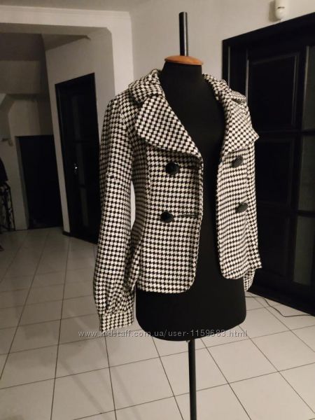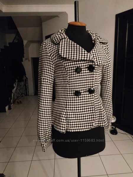 Описание лота : Приталенный пиджак весна-осень, интересный фасон, сзади бант, лакированные пуговицы. Очень хорошо подчеркивает фигуру. На наш 44-46 размер.Способы доставки : Новая Почта, Укрпочта, самовывоз