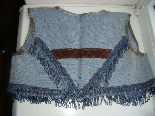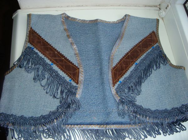 Джинсовый костюм индейца ( на девочку) : юбка и жилетка. шили специально на праздник (шили сами!!! из старых джинсов) , но он не состоялся... Костюмчик абсолютно новый, в юбку даже резинку надо втянуть ( не успели) . Можно использовать и как просто костюм и как карнавальный. примерно на 2,5-3,5 года, но лучше на замеры ориентироваться. жилетка длина - 24 см ПОг - 35 см высота проймы - 14 см Юбка (надо вставить резинку) длина - 24 см ПОт (без резинки) - 33 см ПОб - 38 см. оплата на карту ПриватБанка +0,5%комиссия, отправлю Новой Почтой за Ваш счет, Укрпочтой - +10 грн.. без торга и возврата - все вопросы задавайте - отвечу. НЕ ТОРГУЮСЬ, ОБМЕН НЕ ИНТЕРЕСУЕТ!