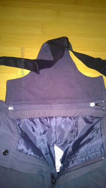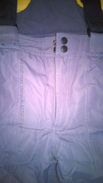 Штани зимові, утеплені Byte (Німеччина), розмір 122 см, у відмінному стані. Штани темно-сірого кольору, утеплені синтепоном, на підкладці, внизу внутрішні манжети на гумці і кнопці. Спинка утеплена флісовою підкладкою, шлейки на гумці. Спинка на замку, відстібається. Кишені застібаються на блискавку. Машинне прання. Довжина штанів від талії - 77 см, талія (на гумці) - 31 см, ширина в стегнах -41 см, довжина від пройми до талії - 27 см, довжина штанини по внутрішньому шву - 50 см.