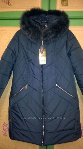 Капюшон съемный с натуральным мехом, длина куртки по спинке 90 см, длина рукава 64-66см, рукав внутри с трикотажным манжетом.