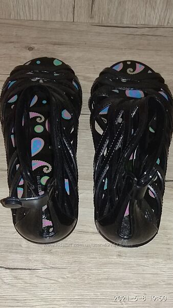Фото1-4 Нові босоножки резинові ззаду застібаються на кнопку. По стельці від краю до краю 22см.-150грн.Фото5-6 Шльопки з пайєтками Эльза і Анна. По стельці від краю до краю 21см. Стан відмінний.