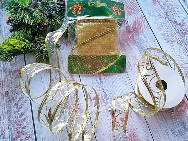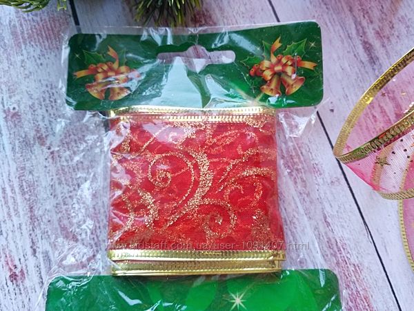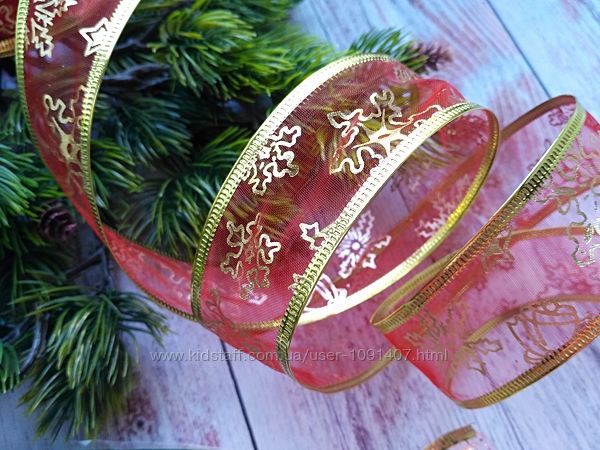 Лента органза,красная с металлизированым краем ,ширина 4 см в новогоднем дизайне ,за счет металлизированого края прекрасно держит форму продаю на метражза метр 6.5 гривен заказ от 2 м