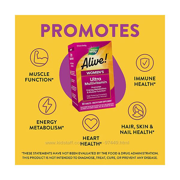 Мультивітаміни Alive!® створені, щоб забезпечити вас енергією для всіх важливих справ. Отримайте максимальну користь від мультивітамінної добавки, до складу якої входять ефективні вітаміни, мікроелементи та харчові суміші, що надають бадьорості на кожен день!