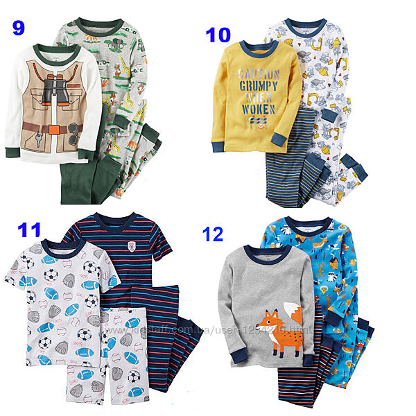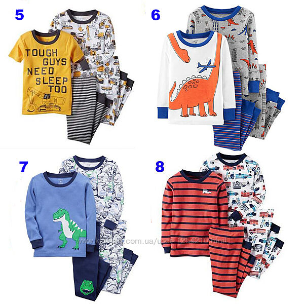 Подробное описание: Пижамы Carters на мальчика 12м, 18м, 24м, 2т, 7