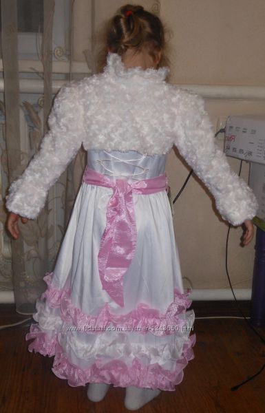 Бесподобная, нежная, стильная, потрясающая "Анжелика" с меховым болеро от фабричного бренда Fenimark, производства Польша, подойдет для Новогоднего торжества, выпуска или другого праздника Вашей принцессе! Платье выполнено из атласа, с хлопковым подъюбником, бретельки из резинок с рюшами, вверху вышивка бисером, подол украшен рюшами (есть в розовом и голубом цвете), на спинке шнуровка, которую можно затянуть или отпустить, широкий пояс, завязывающийся сзади. Болеро меховое на завязке, закрывает грудь с длинными рукавами, расклешенными к низу. В наличии следующие размеры с замерами:110 рост (розовые рюши): продан.