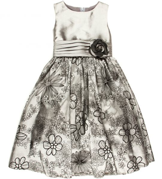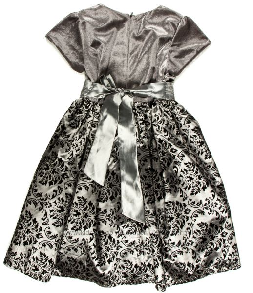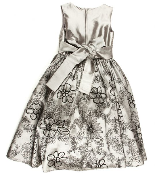 Сукня срібно-сіра з чорним прінтом + квітка на талії збоку - бренд Rodeng р.92, 98 - (матеріал: плотна тканина + бархатна набивка в чорні квіти + підкладка хлопок + фатин)