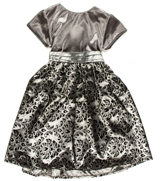 Сукня з коротким рукавчиком срібно-сіра з чорним прінтом - бренд Labry р. 110, 116, 122 - (матеріал верху: велюр + нейлонова підкладка; низ: плотна тканина + бархатна набивка в чорний візерунок + підкладка нейлон + фатин).
