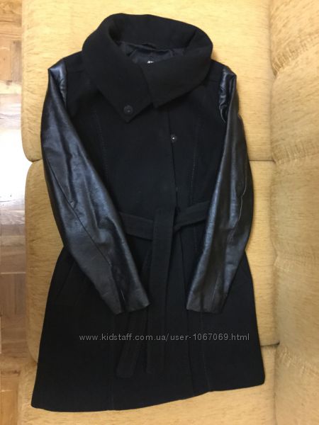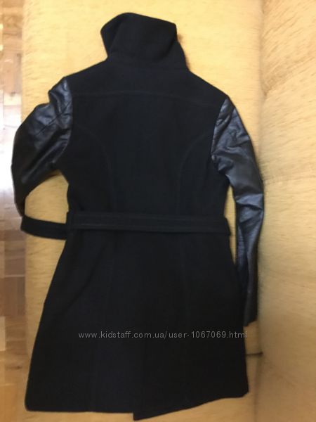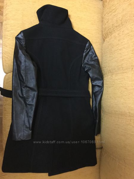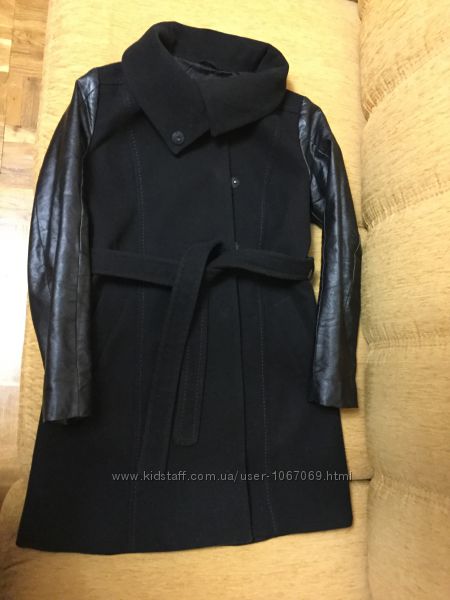 Осеннее пальто H&M, с поясом, на шелковой подкладке, застегивается на 4 заклепки + на 2 заклепки можно застегнуть воротник, рукава из кож. зама; размер S (34). Замеры: от плеча до низа - 84 см, ширина плечей - 41 см, длина рукава - 60 см, полуобхват между подмышками - 48 см, полуобхват в талии - 44 см.Другие объявления продавца