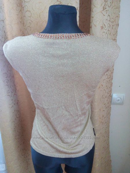 Дуже красива майка-топ золотистого кольору від Next. Стрейч, гарно лягає на будь-яку фігуру.Точні виміри – надішлю у пп.