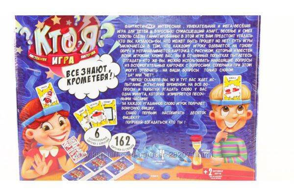 Здравствуйте)Веселые и интересные игры для большой и маленькой компании "Кто я?" на русском языке или "Хто я?" на украинском ТМ Danko Toys.