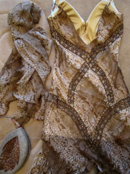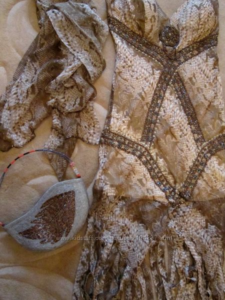 С платьем в комплекте идет шифоновый шарфик, по бокам тоже расшит бисером.