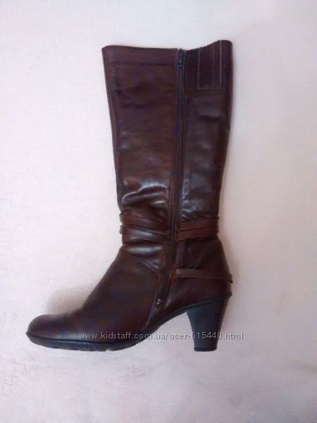 Цвет коричневый с оттенком под красное дерево (очень богатый цвет). Внутри натуральная овчина. Очень теплые. Подошва не убиваемая. Кто знаком с этой фирмой, знает качество производителя. Удобные в носке. Каблук средней высоты.