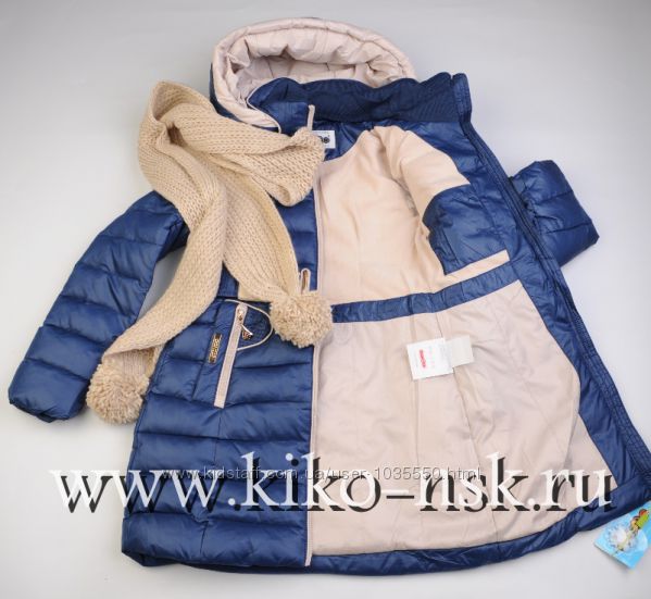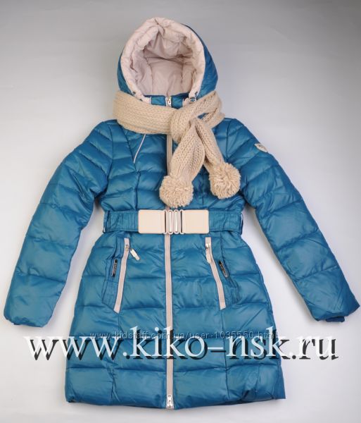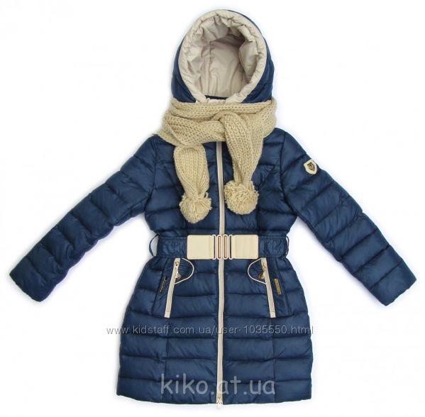 Зимнее пальто на девочку от бренда Кико. Цвет синий. Размеры 134-164р.Наполнитель тинсулейт.Без меха.Капюшон отстегивается. В комплекте идет шарф бежевый. Модель приталенная,под пояс.Рукава с отворотом для регулировки длины и трикотажные манжеты для тепла.Состав :верх-полиэстер, подкладка -флис /полиэстер.