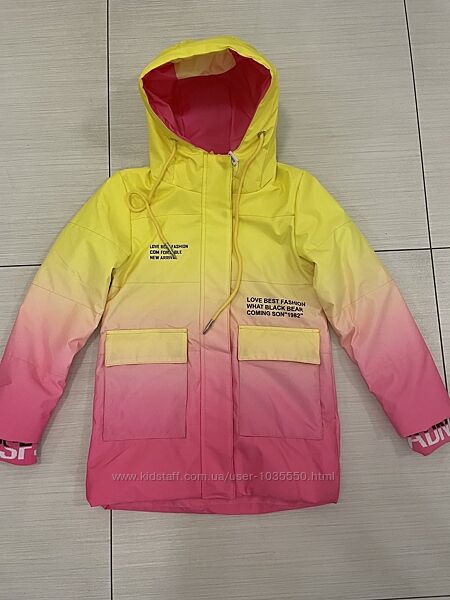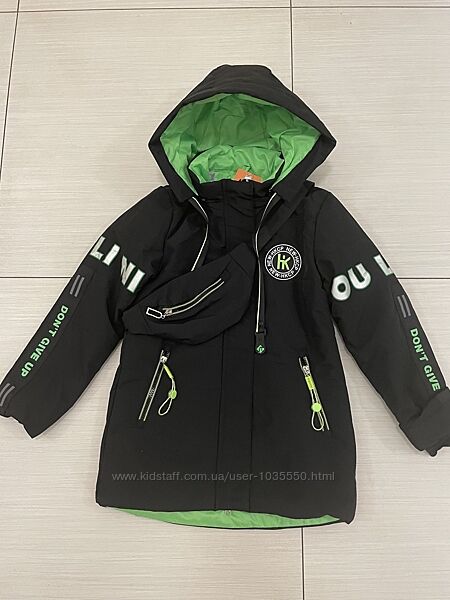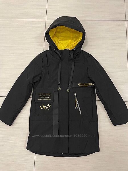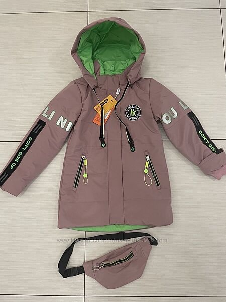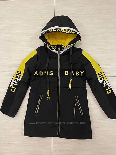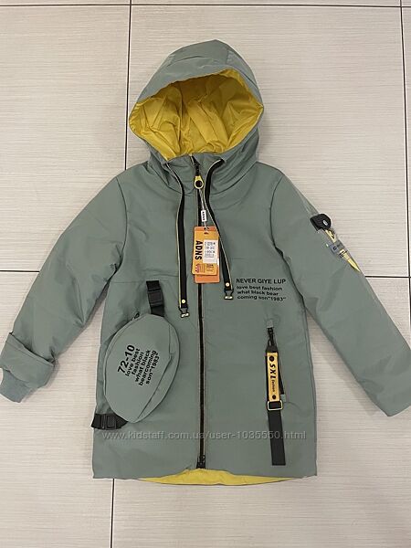 НОВИНКА ЭТОЙ ВЕСНЫ!!!Демисезонная куртка на девочку от бренда ADNS.Цвет чёрный,зелёный,розовый.Размеры 140-164р.Наполнитель-холлофайбер.Капюшон полномерный,отстёгивается и затягивается на кулиски.Спереди два глубоких кармана.На одном из них прикреплена сумочка-бананка.Она съёмная.на рукаве и на кармане отделка желтым цветом.Рукава с отворотом для регулировки длины и трикотажным манжетом для тепла.