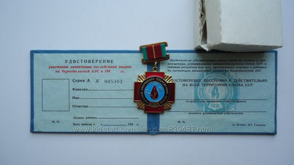 Знак ликвидатора аварии на ЧАЭС с чистым удостоверением, СССР