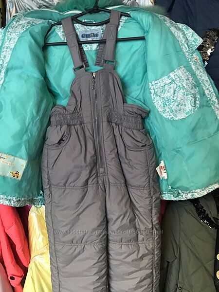 Зимний костюм на девочку от бренда Кико.Цвет бирюзовый.Размеры в остатке-128р.Наполнитель-пух,перо.Опушка-натуральный мех(лиса).Капюшон и мех отстёгивается.Куртка прямого покроя,удлиненная под пояс.Спереди два кармана.Штаны-комбинезоны серого цвета на лямках.Длина брюк регулируется отворотом снизу,имеется резинка для обуви.Состав:верх-полиэстер,подкладка-флис/полиэстер.