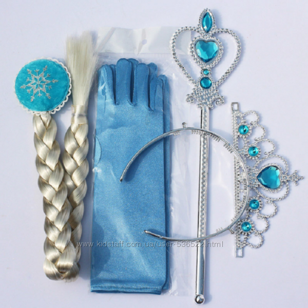 В набор входит: корона (диадема), коса, волшебная палочка, перчатки принцессы Эльзы.