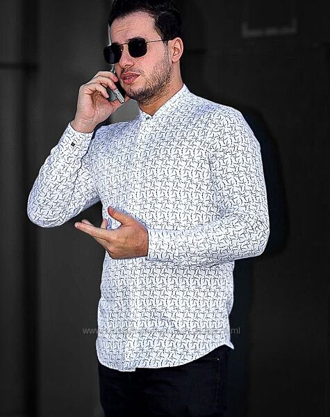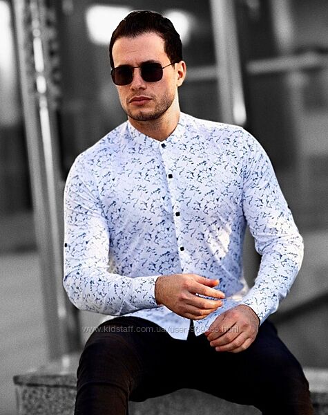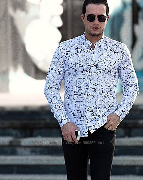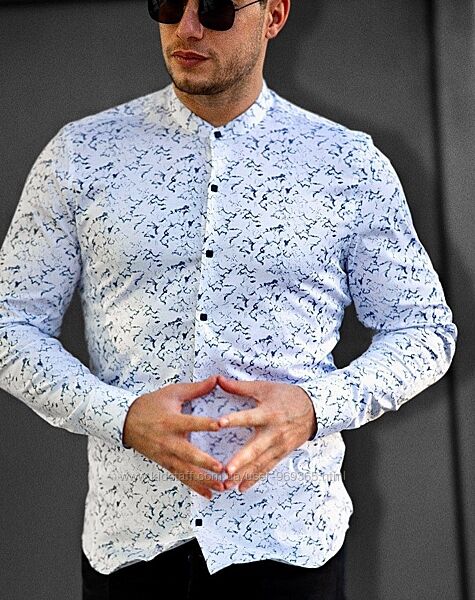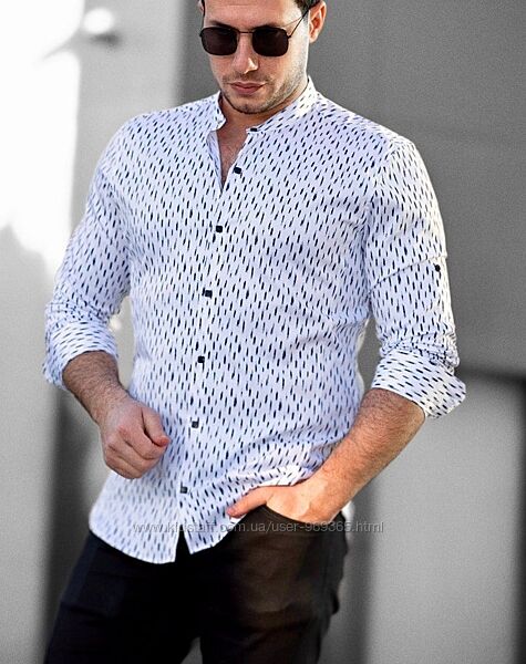 Подробное описание: Белые мужские рубашки с принтом и воротником стойкой. ТМ Rubaska
