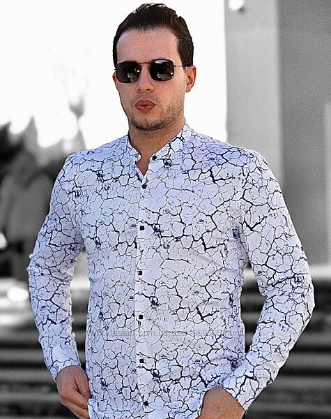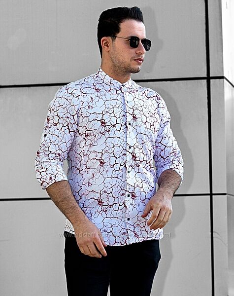 Белые мужские рубашки с принтом и воротником стойкой. ТМ Rubaska