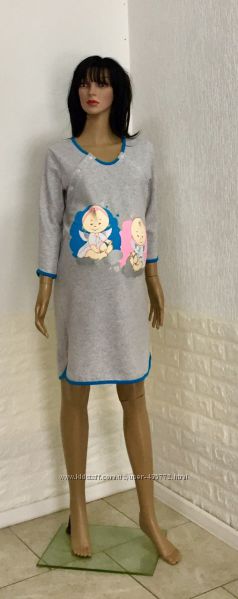 фото 1 Ночные теплые туники для беременных и кормящих мам. Рукав три четверти. Удобнная для кормления застежка на кнопках что поможит быстро и легко накормить голодного малыша. Размер и стоимость: 44-195 грн